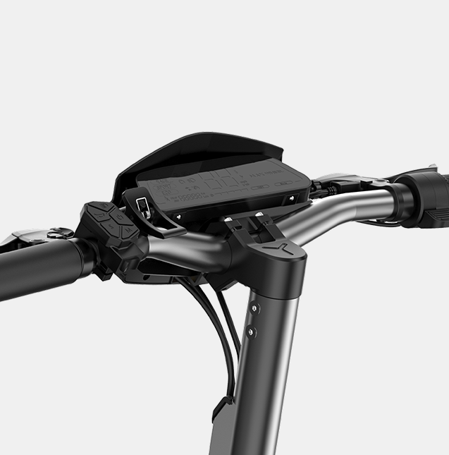 E12 Plus features a bright smart display that remains clearly visible under direct sunlight and provides real-time info like speed, battery level, and riding mode.
